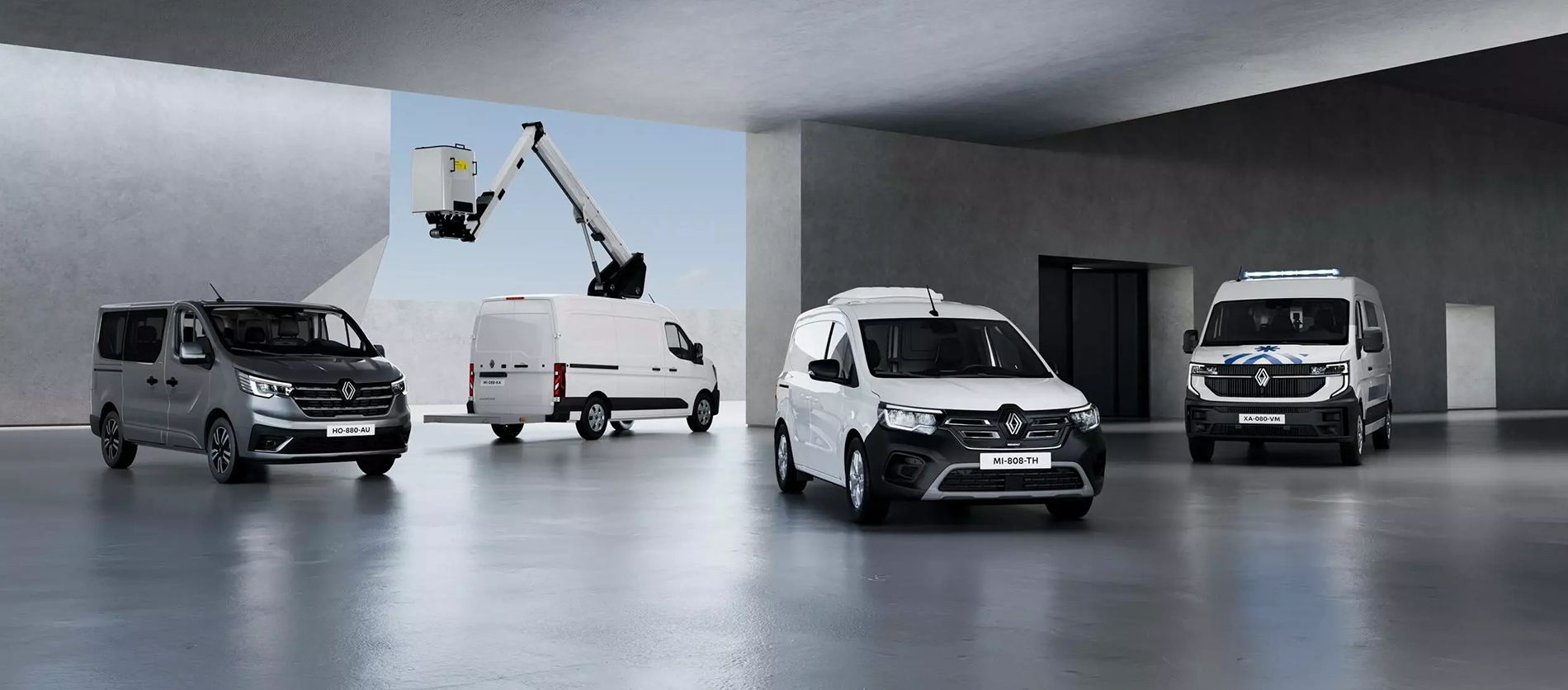 Renault KANGOO VAN, Renault TRAFIC și Renault MASTER se adaptează afacerii tale. Cu sute de adaptări posibile, aceste modele răspund tuturor nevoilor afacerii tale. Caroserie, motoare, interior... creează-ți o autoutilitară așa cum vrei tu.