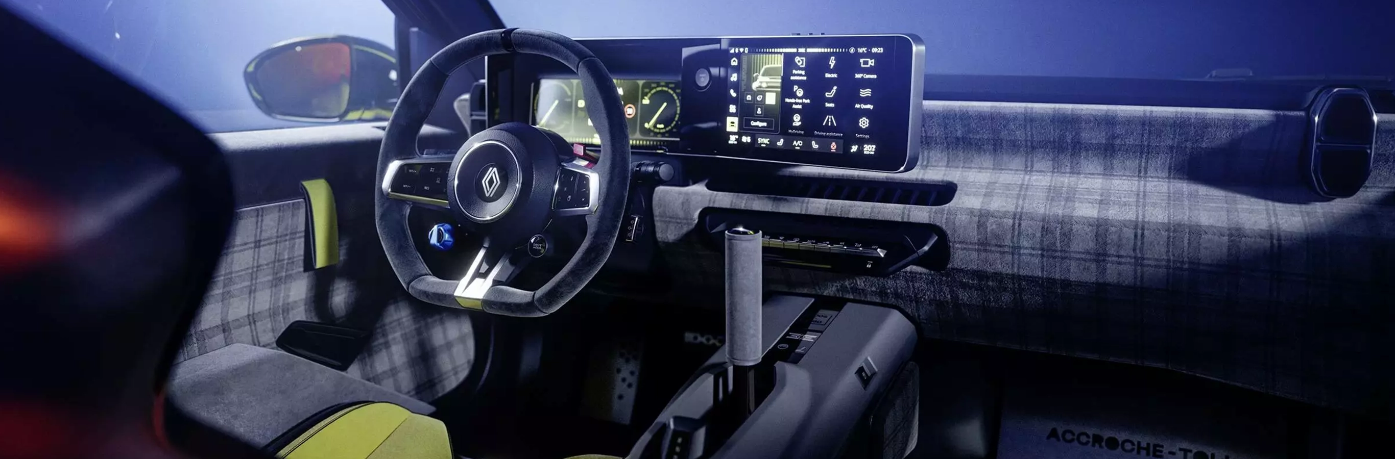 Habitaclul dispune de scaune profilate personalizabile și centuri cu prindere în 6 puncte. Pe circuit, frâna de mână centrală stil rally permite derapaje controlate² în virajele abordate radical. În spatele volanului sport se regăsește afișajul digital dublu al ecranului openR.